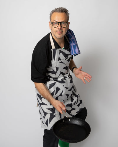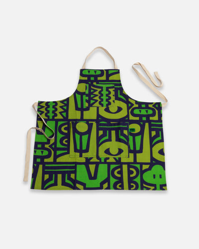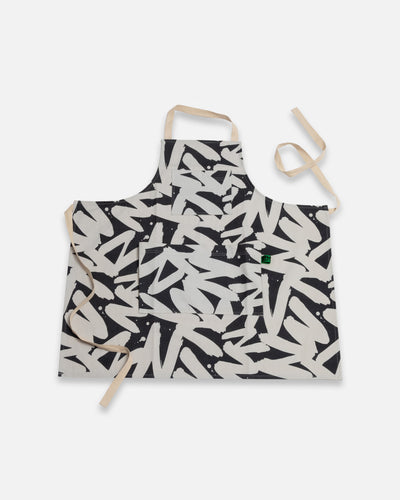 Our mid-length irregular apron is made from soft yet heavyweight cotton, featuring our signature prints in Chameleon + Big EZ's.