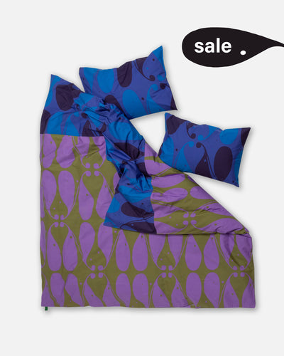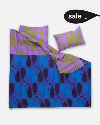 Our bold + vibrant art inspired reversible duvet sets are made in the same GOTS certified organic cotton & joyous print designs as our pyjamas, and constructed in our signature 3 piece construction which features 2 contrasting patterns on each side, creating joyous art for your bed with a choice of colourful 'moods'.
