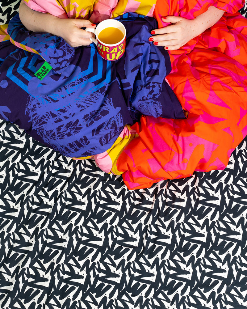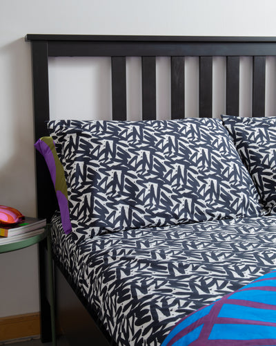 Inject some design-led pattern joy into your bedroom with our super deep fitted Percale sheets, made in a beautifully soft sustainable (125gr/m2) Tencel*/Cotton mix, printed with a small scale version of our signature hand drawn zzzzs print in black & white.