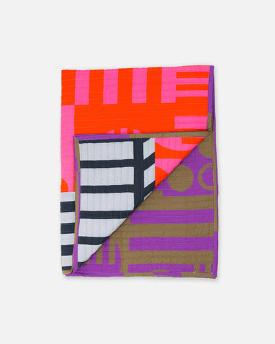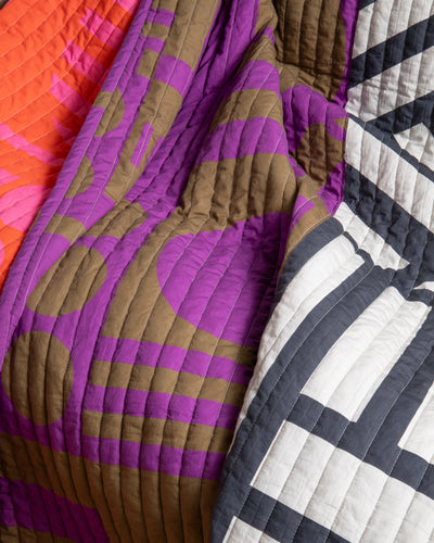 Our irregular reversible throws are responsibly made in India from 100% Organic Cotton, padded with recycled polyester and designed with outsize spirit for a jolt of cosy joy.