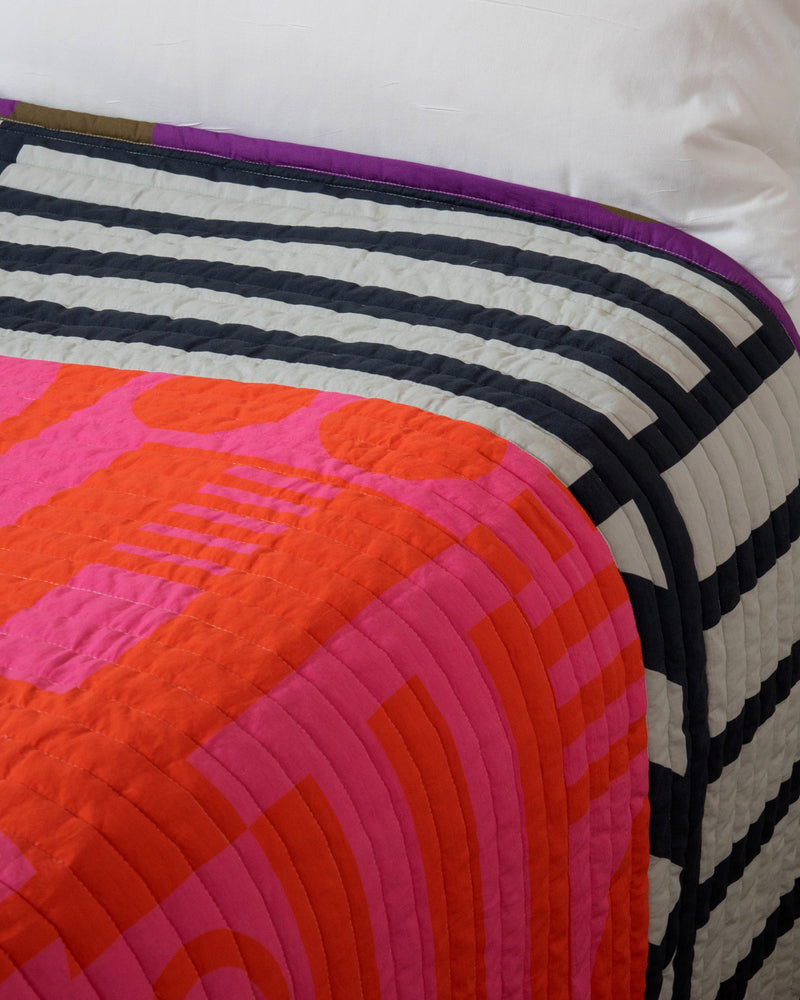 Our irregular reversible throws are responsibly made in India from 100% Organic Cotton, padded with recycled polyester and designed with outsize spirit for a jolt of cosy joy.