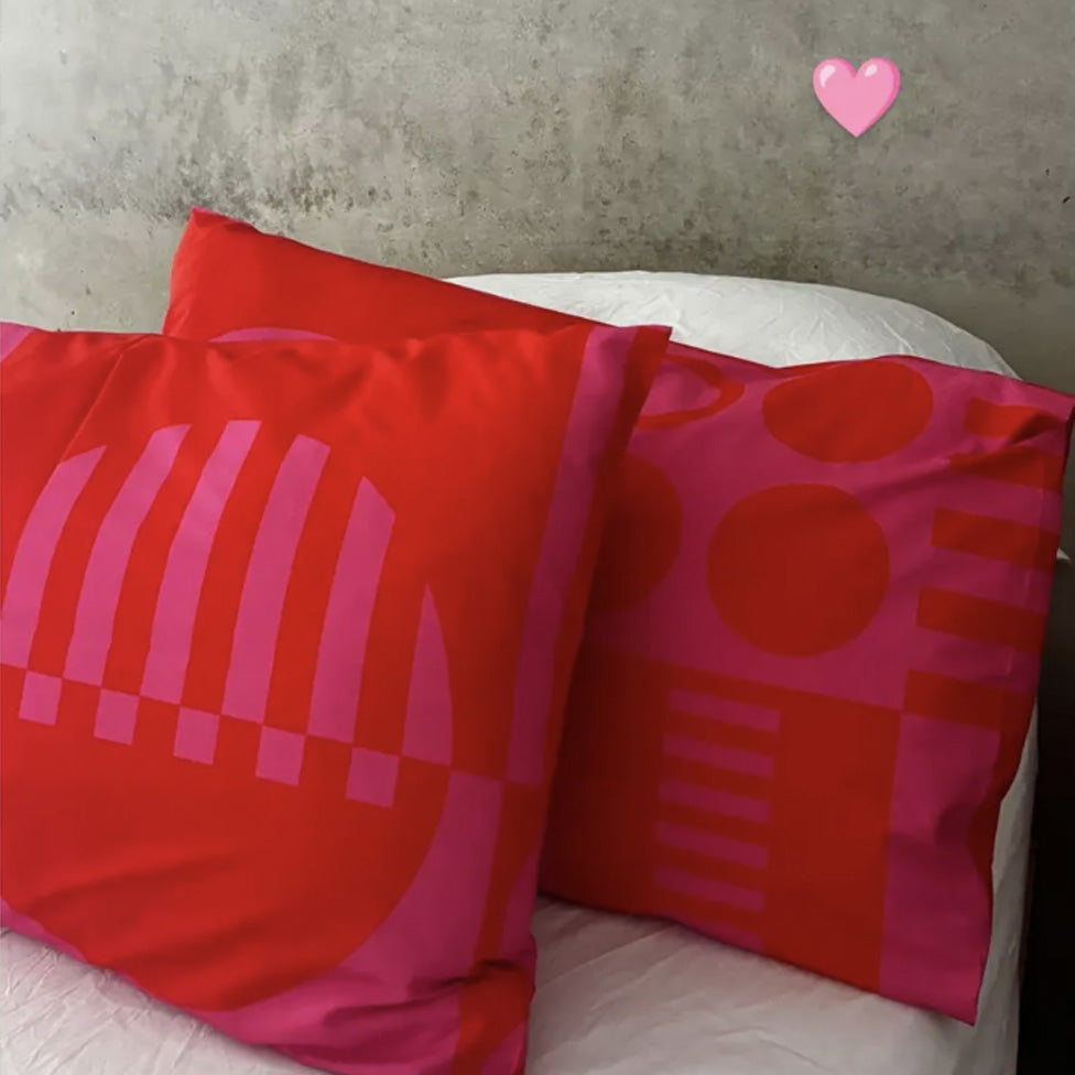 These geometric beauties are made in the UK and featuring a 'split' motif echoing the distinctive look of our irregular bedding sets.