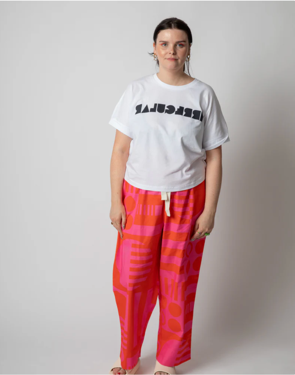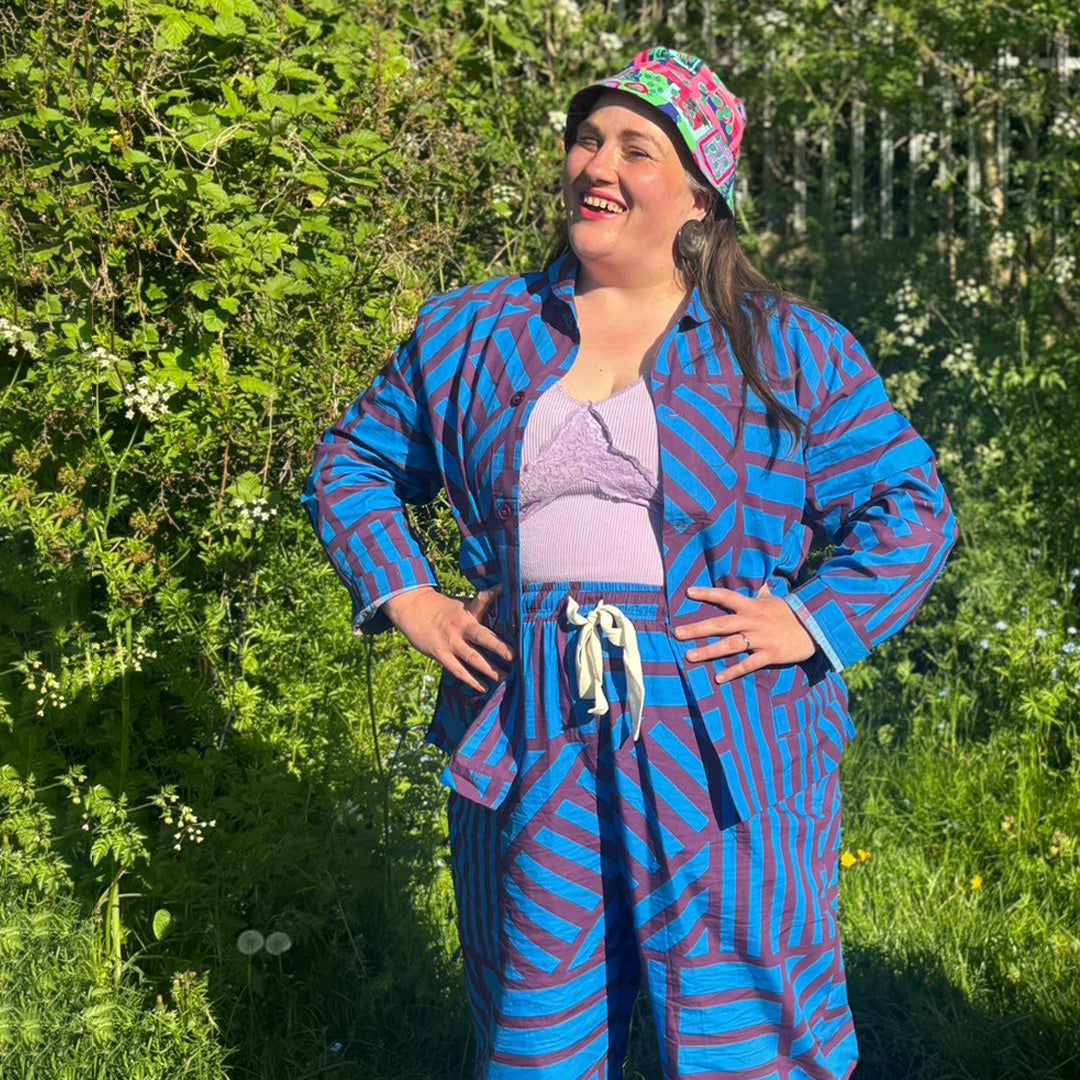 Designed in Glasgow by Mil, our wide legged elasticated trousers feature twin needle stitching, a generous volume of fabric in the leg, a double faced hem that can be rolled up (or let down), have no fly, generous side pockets and a wide elasticated waistband.